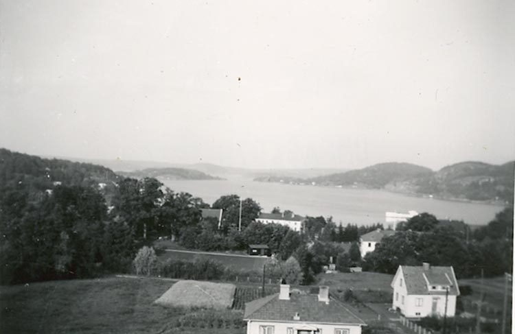 Enligt Bengt Lundins noteringar: "Utsikt över viken. Småhus. Ljungskile".