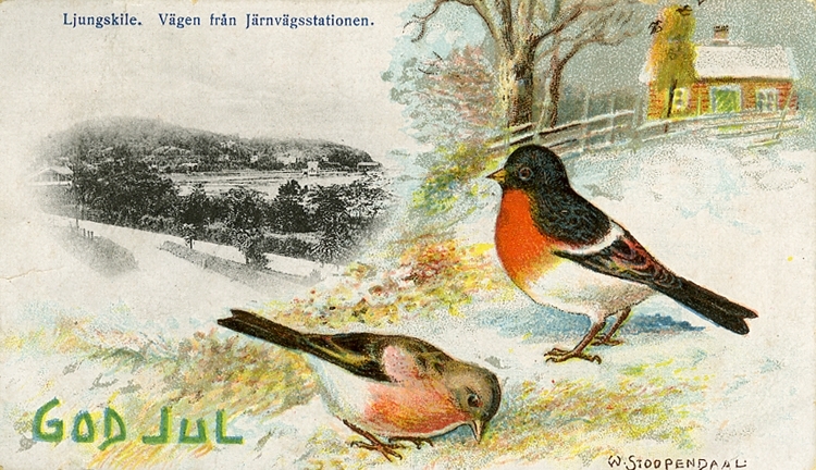 Enligt Bengt Lundins noteringar: "Ljungskile. Vägen från järnvägsstationen. God Jul".