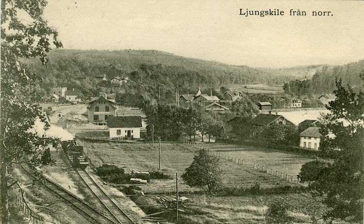 Enligt Bengt Lundins noteringar: "Ljungskile från norr. Stationsområdet med byggnation".