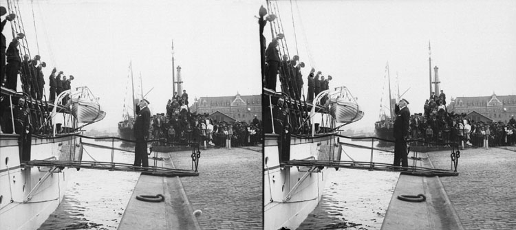 14 Augusti 1901, Kungen går ombord på "Drott" (Stereo karta III).