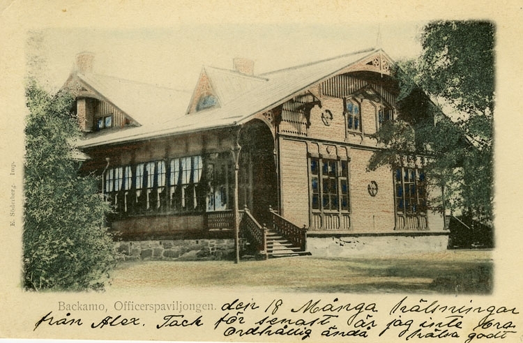 Enligt Bengt Lundins noteringar: "Officersmässen med entré och veranda".