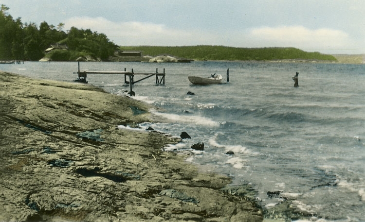 Enligt Bengt Lundins noteringar: "Åh Stiftgård. Klippor och brygga".