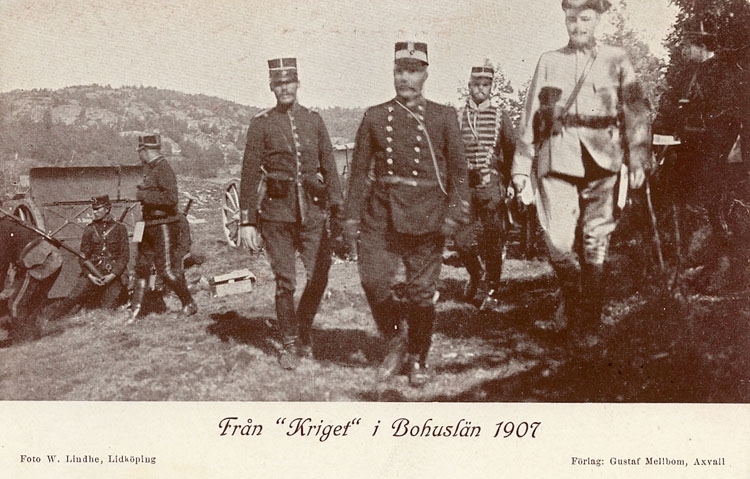 Enligt Bengt Lundins noteringar: "Från "kriget" i Bohuslän 1907. Officerare vid artilleri".