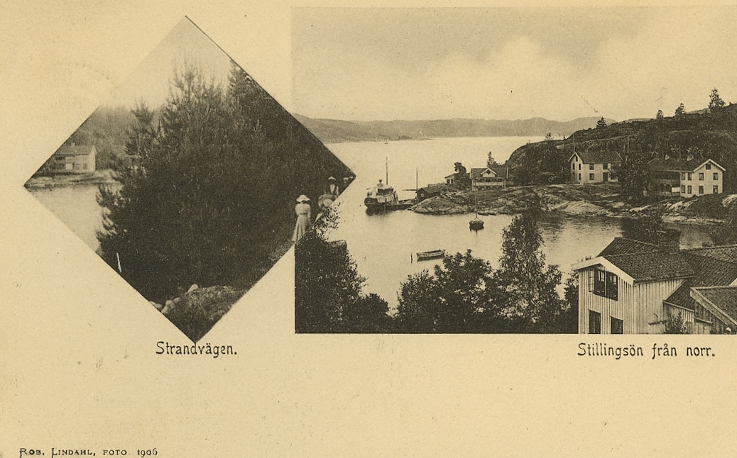 Enligt Bengt Lundins noteringar: "Stillingsön från norr. Strandpromenaden"