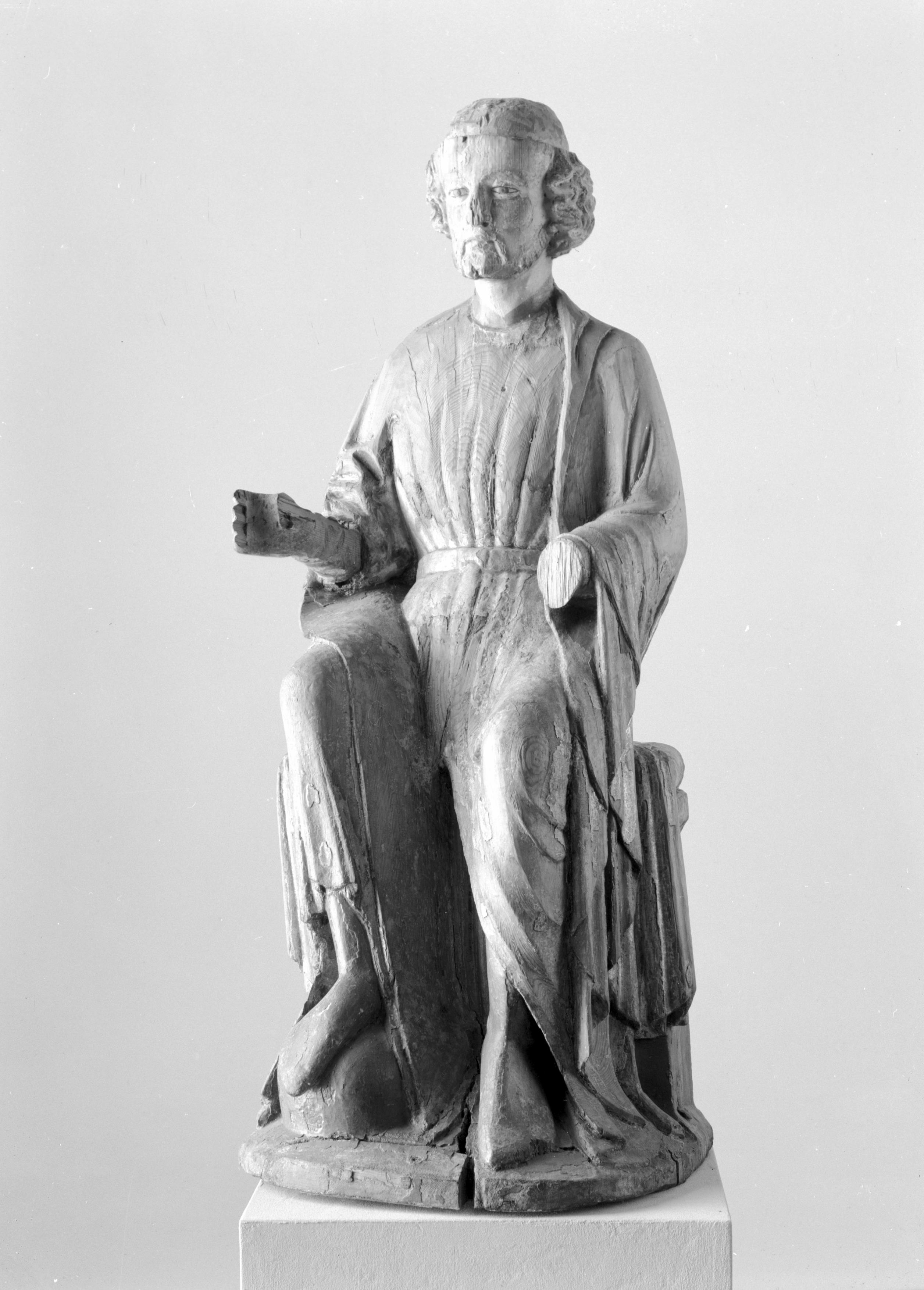 Träskulpur, sittande S:t Olof, från 1200-talets mitt.