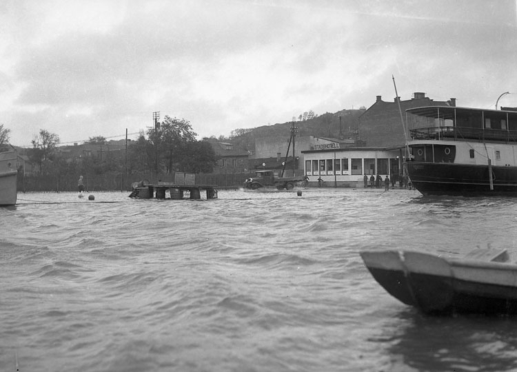 Uppgift enligt fotografen: "Uddevalla. Översvämning, Västerlånggatan."