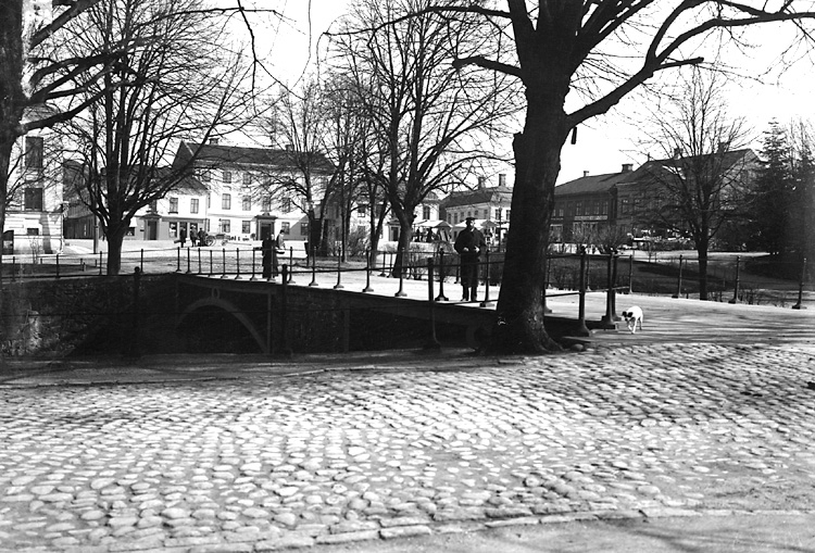 Enligt tidigare noteringar: "Vy från Södra Hamngatan vid den s.k. Träbron, mot Kungstorget och Rådhuset.