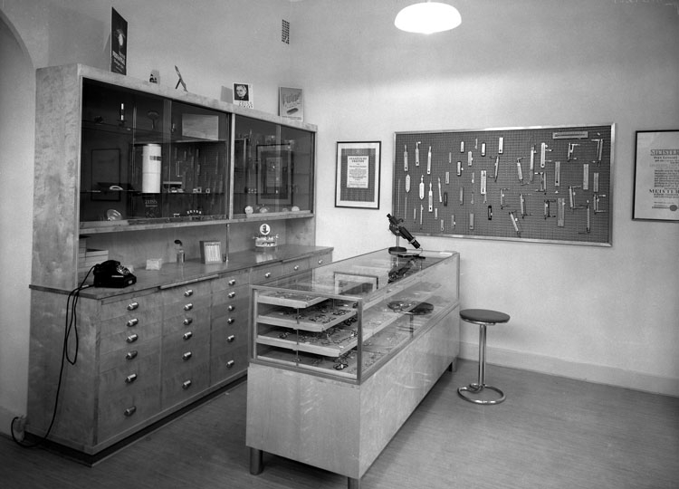 Uppgift enligt fotografen: "Uddevalla. Svens Optik. N. Drottningsgatan 19 interiör."
