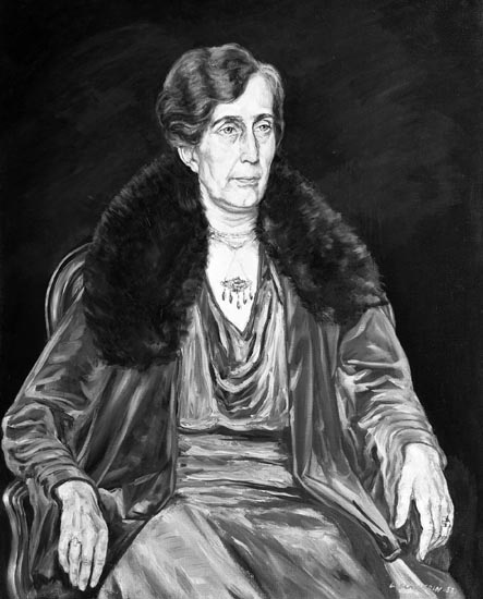 Uppgift enligt fotografen: "Teckning. Doktorinnan Carlsund. Konstnär L. Schverin 1932."