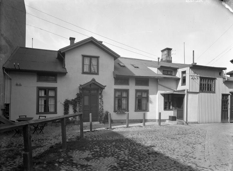 Uppgift enligt fotografen: "Uddevalla. Stiernstams fastighet, gårdssidan, Kilbäcksgatan."