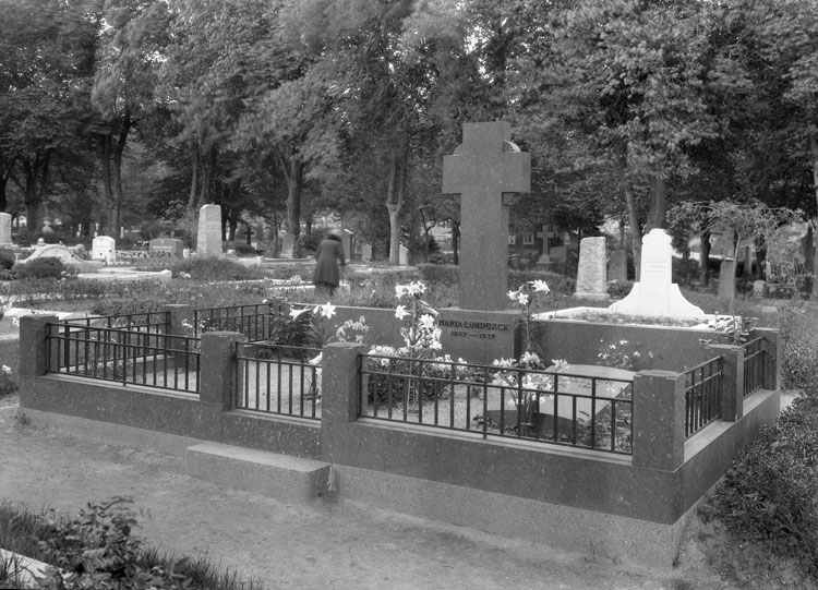 Uppgift enligt fotografen: "Uddevalla. Norra Kyrkogården. Maria Lundbäcks grav. f. 1857 verksam 1883-1927."