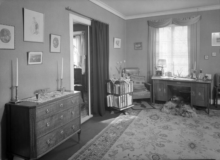 Uppgift enligt fotografen: "Uddevalla. Interiör fru Toni Wikborgs hem Ådalsgatan 4."