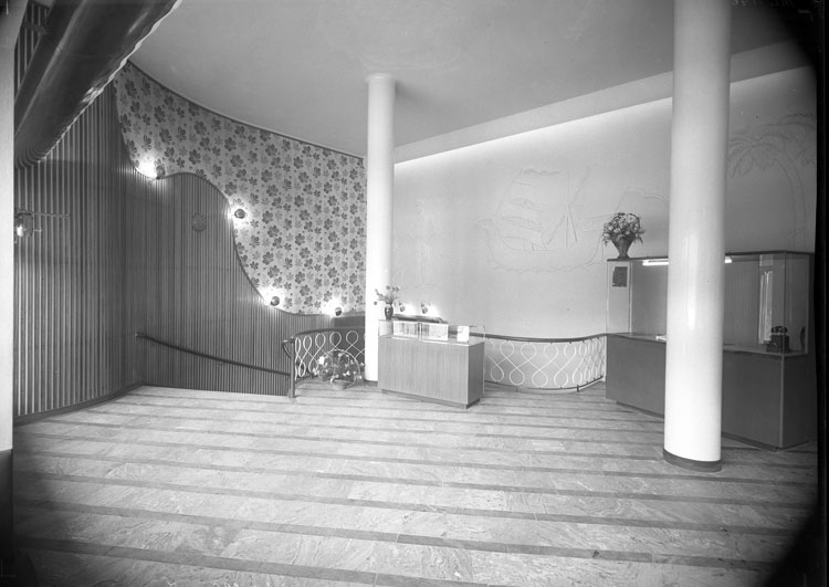 Uppgift enligt fotografen: "Uddevalla. Biografen "Saga" Biljettkassan."