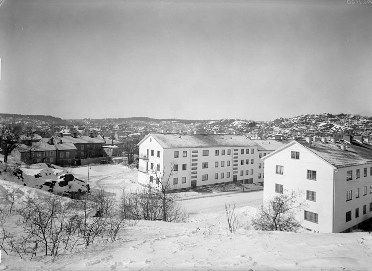 Uppgift enligt fotografen: "Uddevalla. Fastigheter vid Skolgatan."