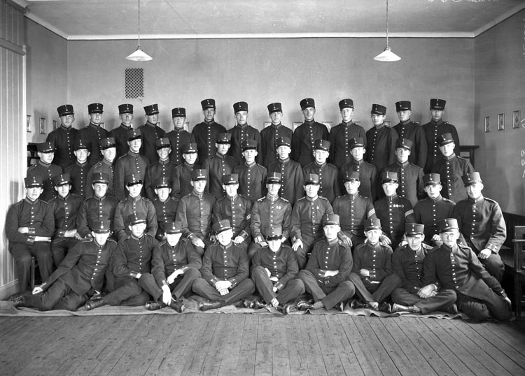 Uppgift enligt fotografen: "Uddevalla. Gruppfoto. (Löjtnant Lindgren)"