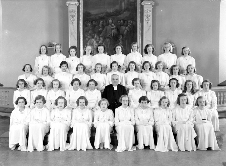 Uppgift enligt fotografen: "Uddevalla. Konfirmander. Prosten Bogren".