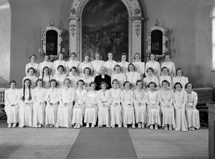 Uppgift enligt fotografen: "Uddevalla.Konfirmander. Flickor. Pastor Agner."