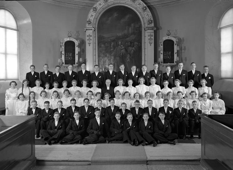 Uppgift enligt fotografen: "Uddevalla.Konfirmander. Stor grupp. Pastor Agner."