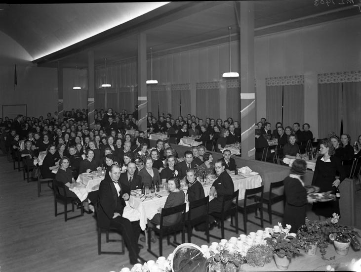Uppgift enligt fotografen: "Uddevalla. Kongresshallen. Sv. Beklädnads avd. Jubileum."