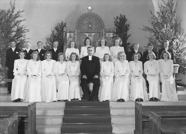 Text till bilden: "Konfirmander i Lyse. 1947.05.24".