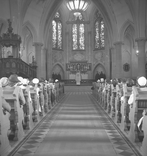 Text till bilden: "Kyrkoherdeinstallation i Lysekils kyrka. 1947.08.31".