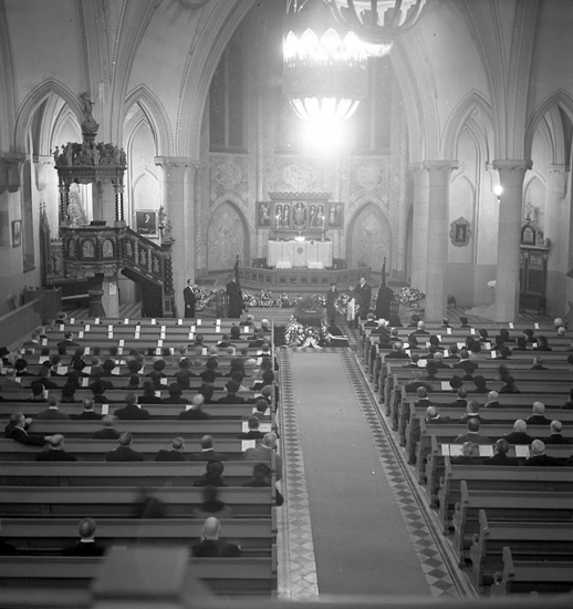 Titel: Text till bilden: "Musikdir. Karl Sandströms begravning. 1948.12.07" i