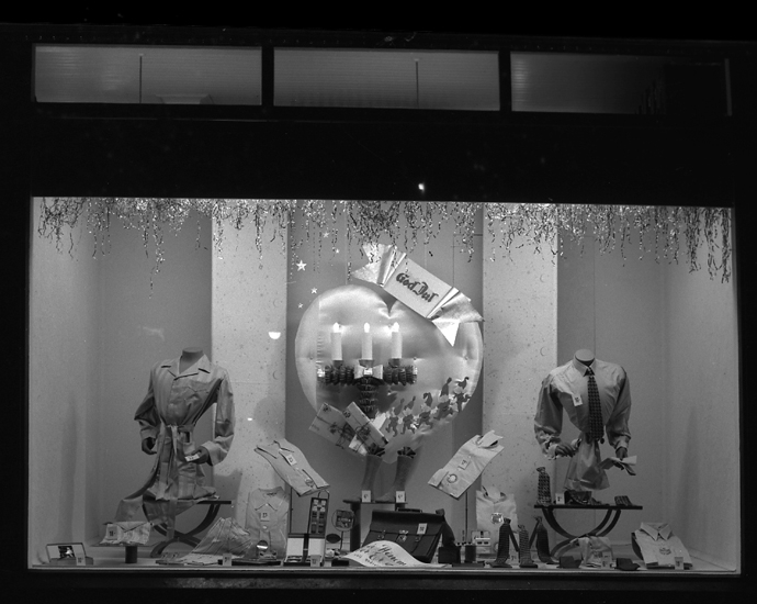 Text till bilden: "Firman Sven Larsson. Skyltfönster. 1948.12.10"