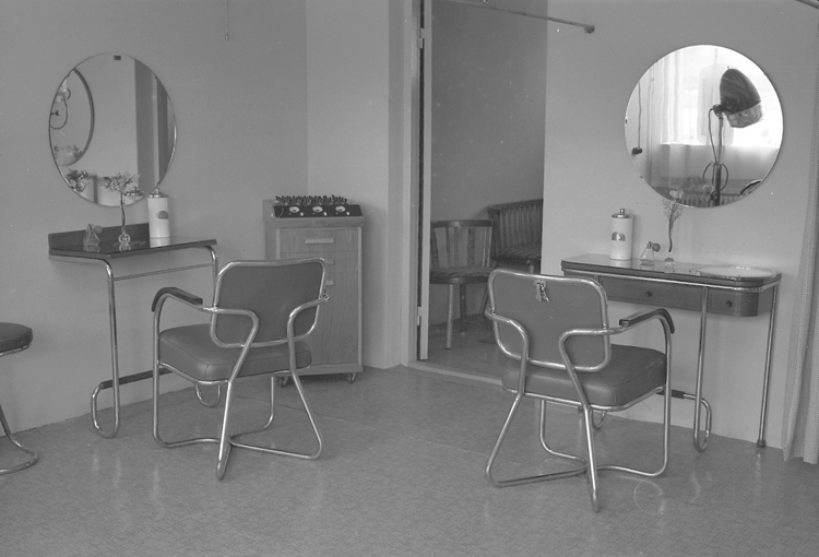 Text till bilden: "Damfrisering. Brastad. Best. av Anton Lindblad, Östergatan 4 Malmö. 1949.11.01"