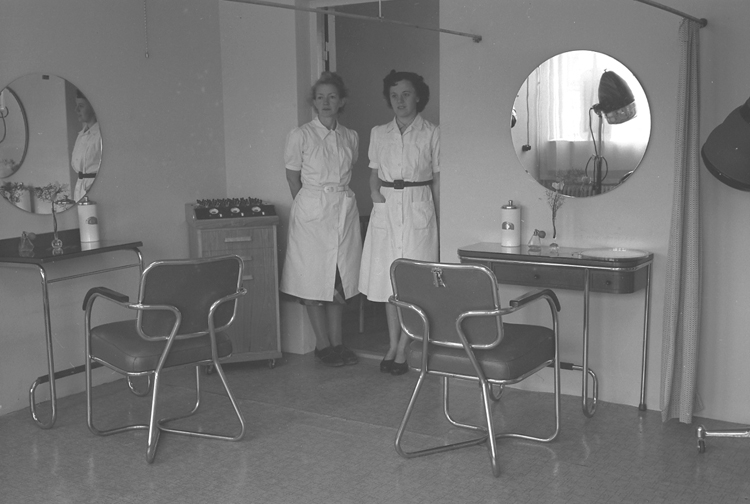 Text till bilden: "Damfrisering. Brastad. Best. av Anton Lindblad, Östergatan 4 Malmö. 1949.11.01"