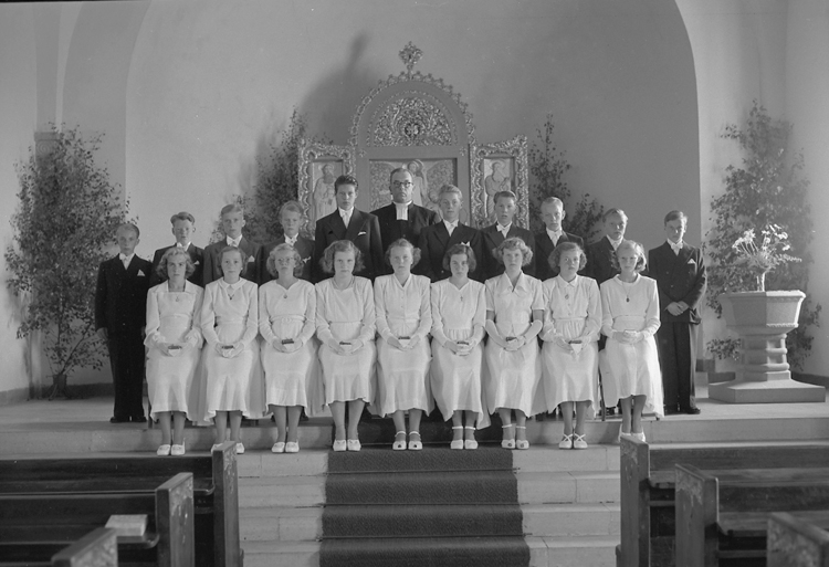 Text till bilden: "Konfirmation i Lyse Kyrka. 1950.08.05"