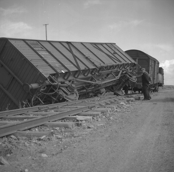 Text till bilden: "Tågurspårning på Grötöbanan. 8 september 1950."