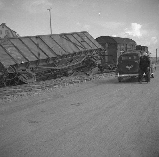 Text till bilden: "Tågurspårning på Grötöbanan. 1950.09.08"