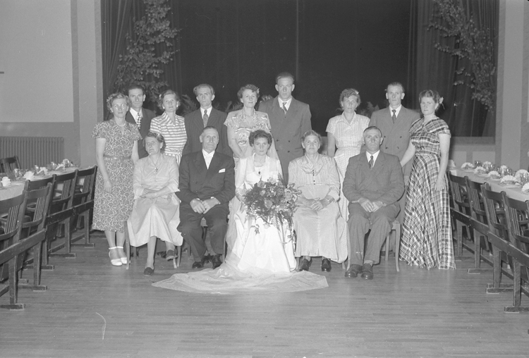 Titel: Text till bilden: "Adele Andersson, Föreningsgatan 7. Brastad. Folkets Hus. Bröllopsfest. 1950.06.23"
