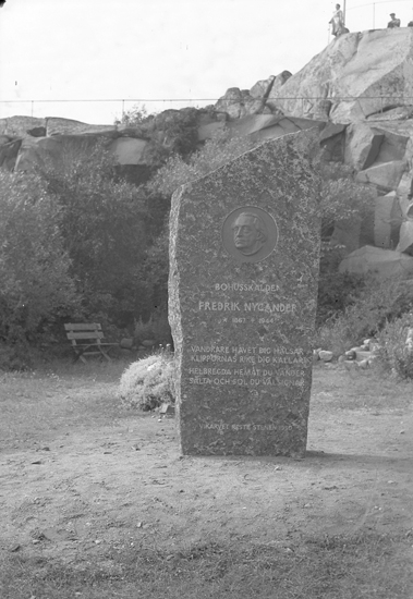 Text till bilden: "Fredrik Nycanders minnessten. Vikarvet. 1950.07.01"