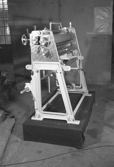 Text till bilden: "Bro Mek. Verkstad. Lackeringsmaskin. 1949.12"