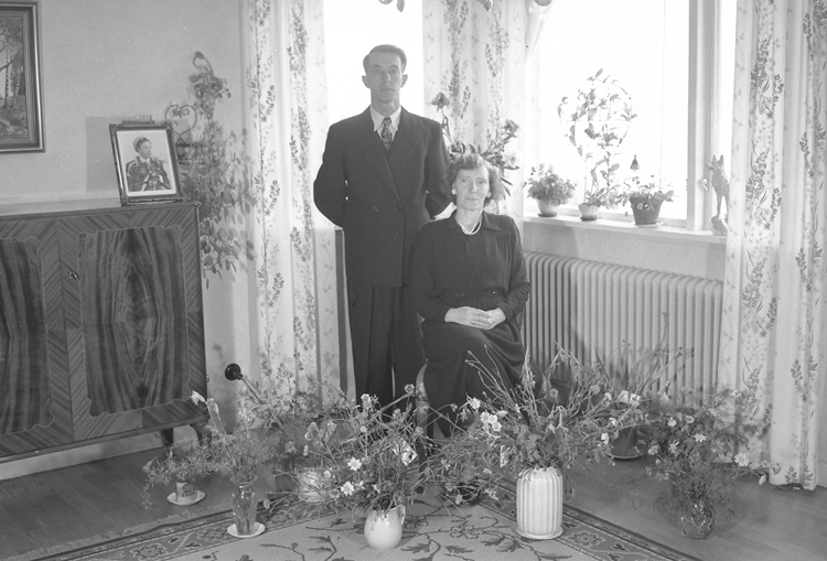 Text till bilden: "Fru Sally Johansson, N. Kvarngatan 29. 50 år. 1950.06.23"