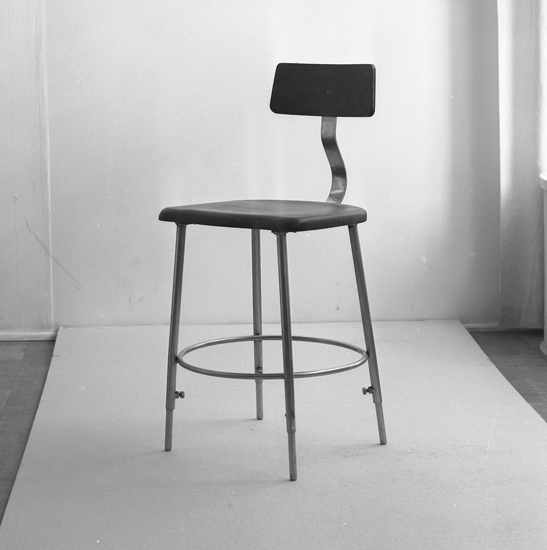 Text till bilden: "Stol. Lysekils Bleck o Plåtslageri. Ateljefoto. 1956"