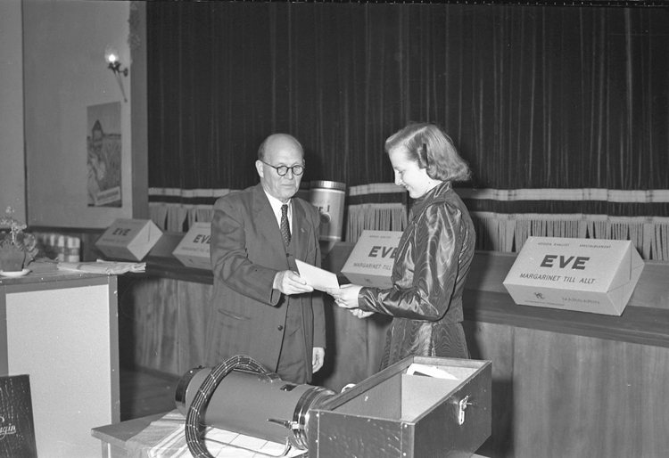 Titel: Text till bilden: "W. B. Konsum. Prisutdelning. Folkets Hus. B-sal. 1949.12.14" i