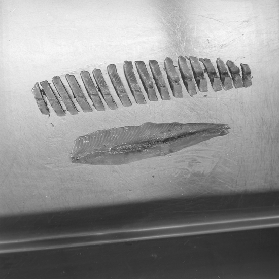 Titel: Text till bilden: "Lysekil. Skandia Konservfabrik. Interiör. 1956"