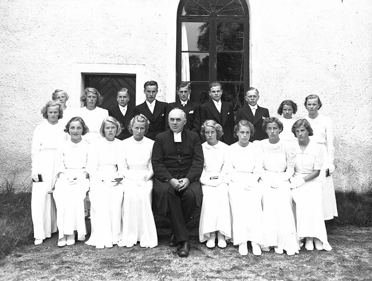 Text till bilden:"Präst med konfirmander, Saxenhof".