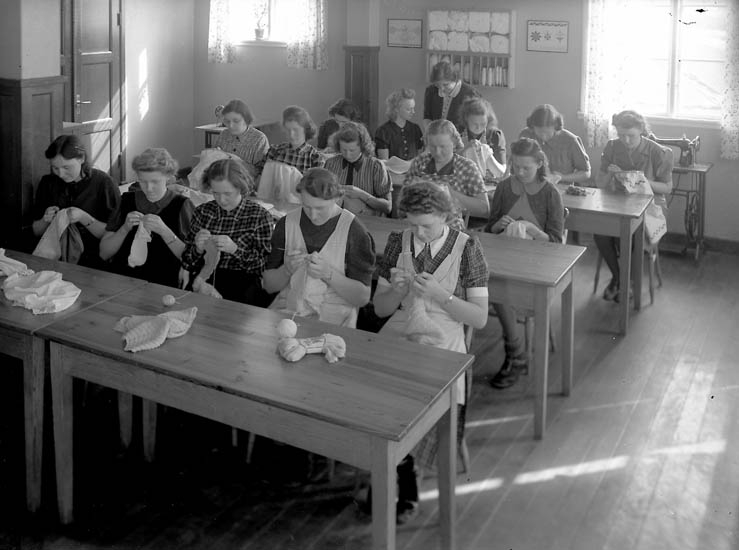 Text till bilden:"Undervisning i sömnad, stickning och virkning. Lärarinna Leibe . V.U.S".