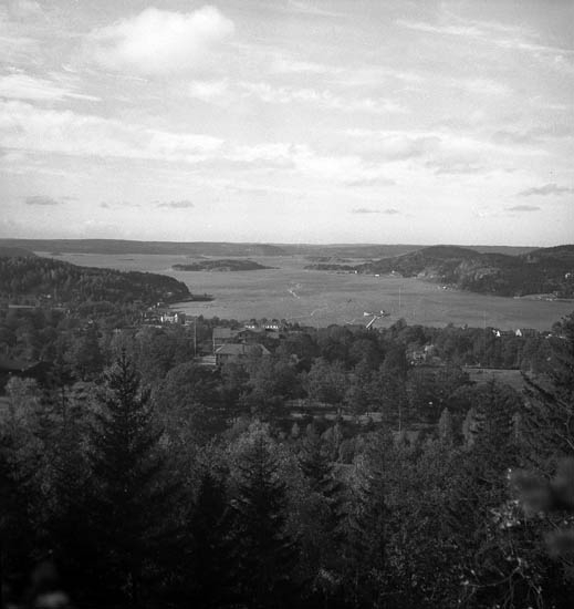 Text till bilden:"Utsikt över Ljungskile fjorden och V. U. Skolan".