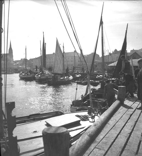 Text till bilden: "Lysekil. Fiskhamnen. Båtar. 1940-tal"