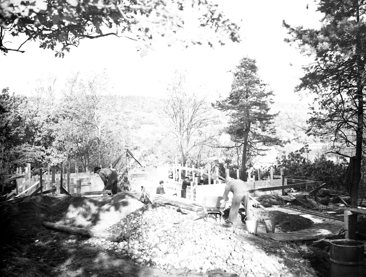 Text till bilden: "Arbete med grund, Dalslandsstugan".