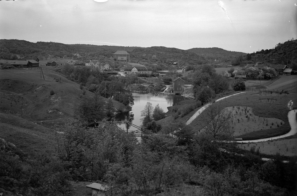 Text till bilden: "Vy över Bäveån från Kasernterassen. Taget 4/6 kl. 1,25 em.1922".