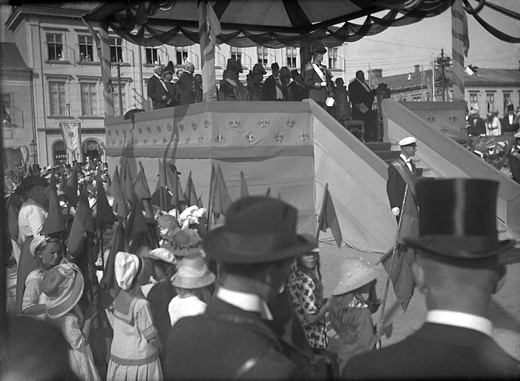 Enligt senare noteringar: "Från statyavtäckningen. Kungen på talartribunen. 31/8 1915. Sämre."