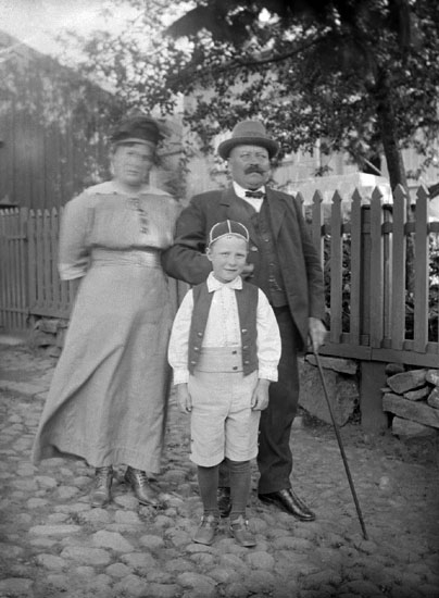 Enligt senare noteringar: " Herr och fru Andersson och Olle, från Värmland. Taget på Lilla Nygatan, 3/8 1915."