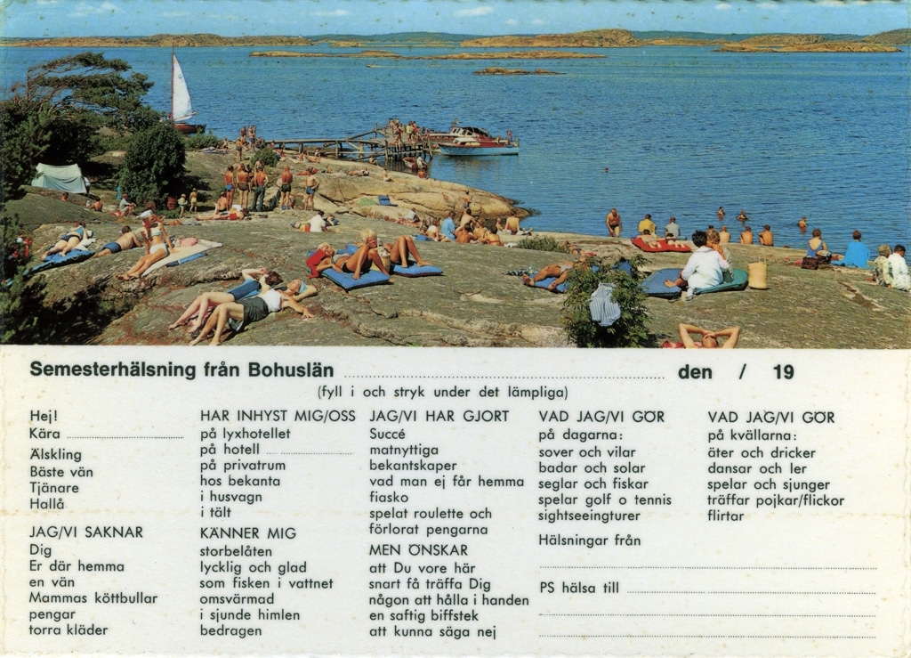 Text till bilden: "Semesterhälsning från Bohuslän".