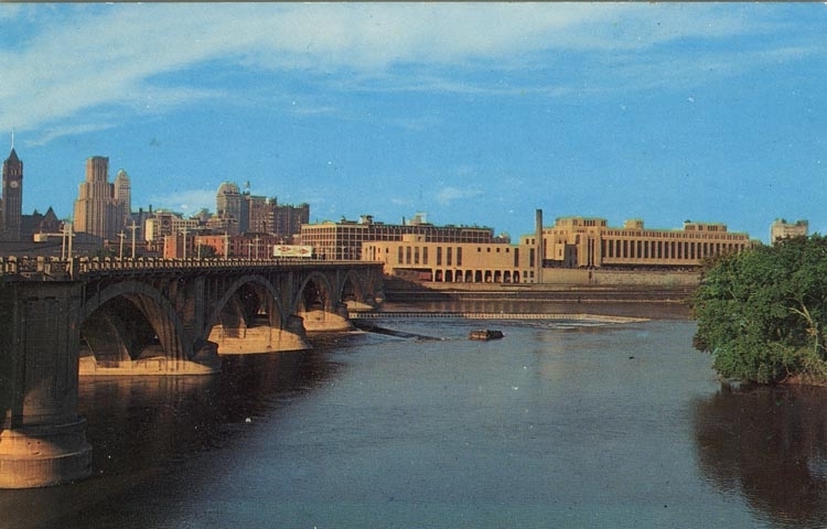 Notering på kortet:The third avenue bridge. Post Office, Minneapolis, Minnesota..