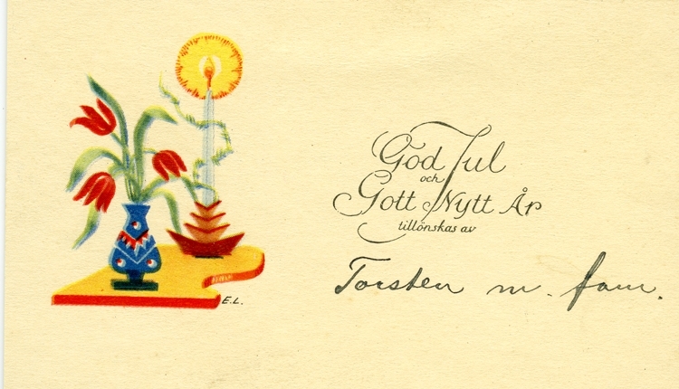 Notering på kortet: God Jul och Gott Nytt År tillönskas av Torsten m. fam.